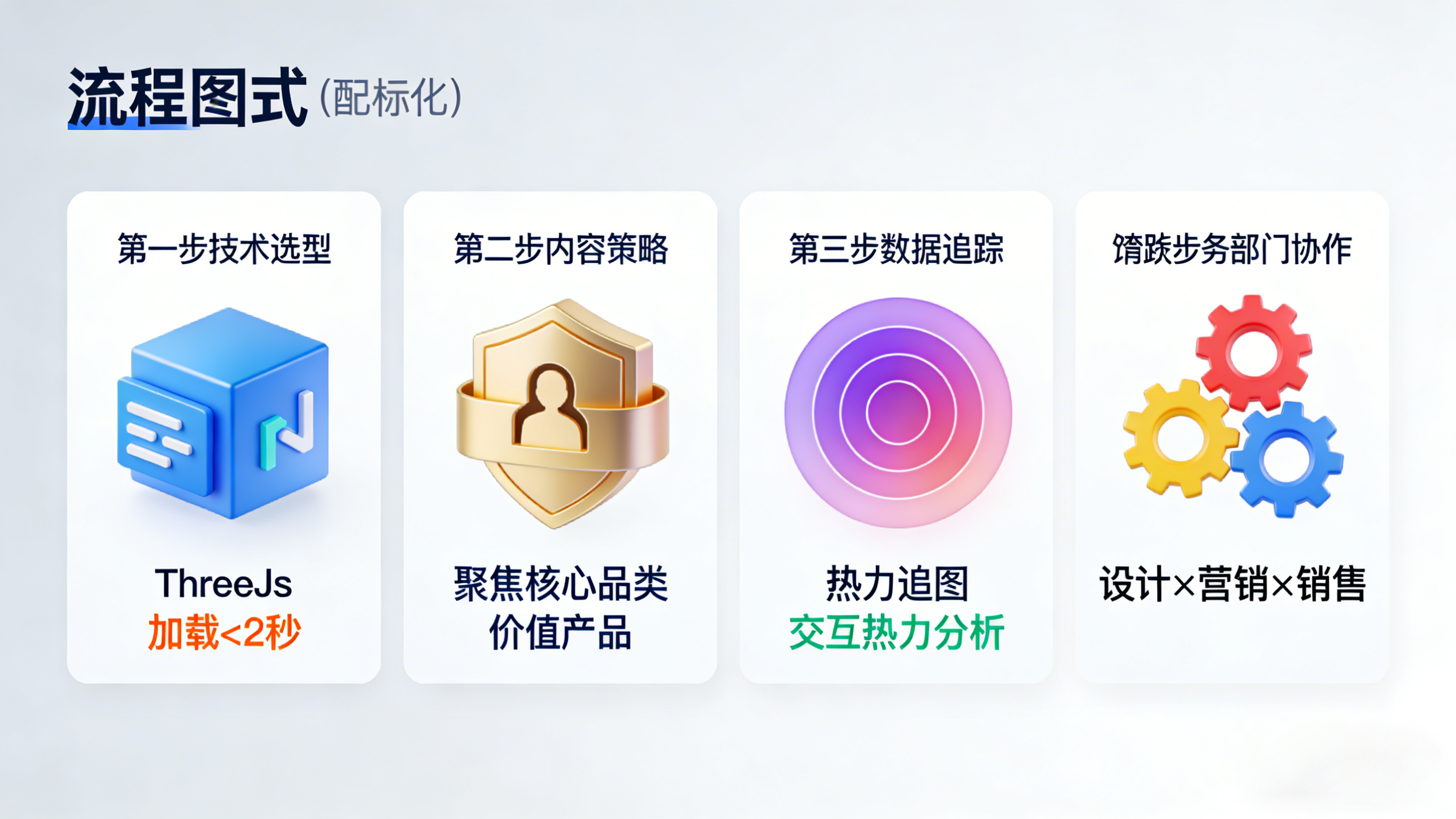 内容策略:聚焦高价值产品(如高单价、技术复杂度),避免全品类3D化导致资源浪费。