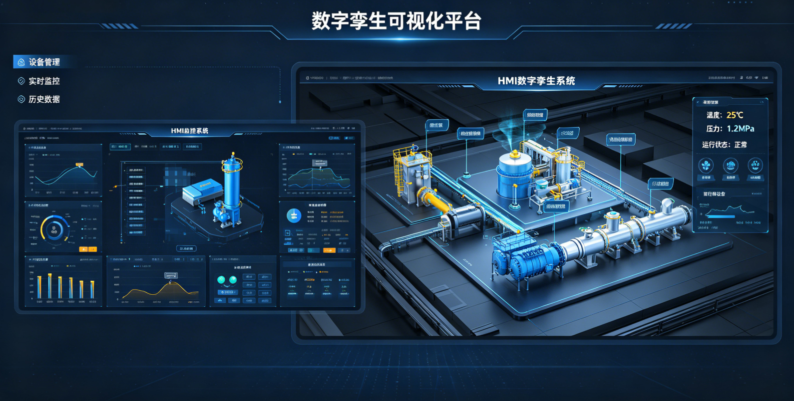 在佛山制造业数字化转型浪潮中,HMI数字孪生可视化管控系统作为工业智能化升级的核心支撑,正逐步渗透到泛家居、工业装备、3C电子等多个领域,为企业实现高效管控、降本增效提供重要助力。佛山配致科技深耕本地产业一线,立足Web3D技术研发与应用,结合多年行业实践经验,为大家系统解析HMI数字孪生可视化管控系统的核心基础知识,助力企业更好地拥抱数字化变革。