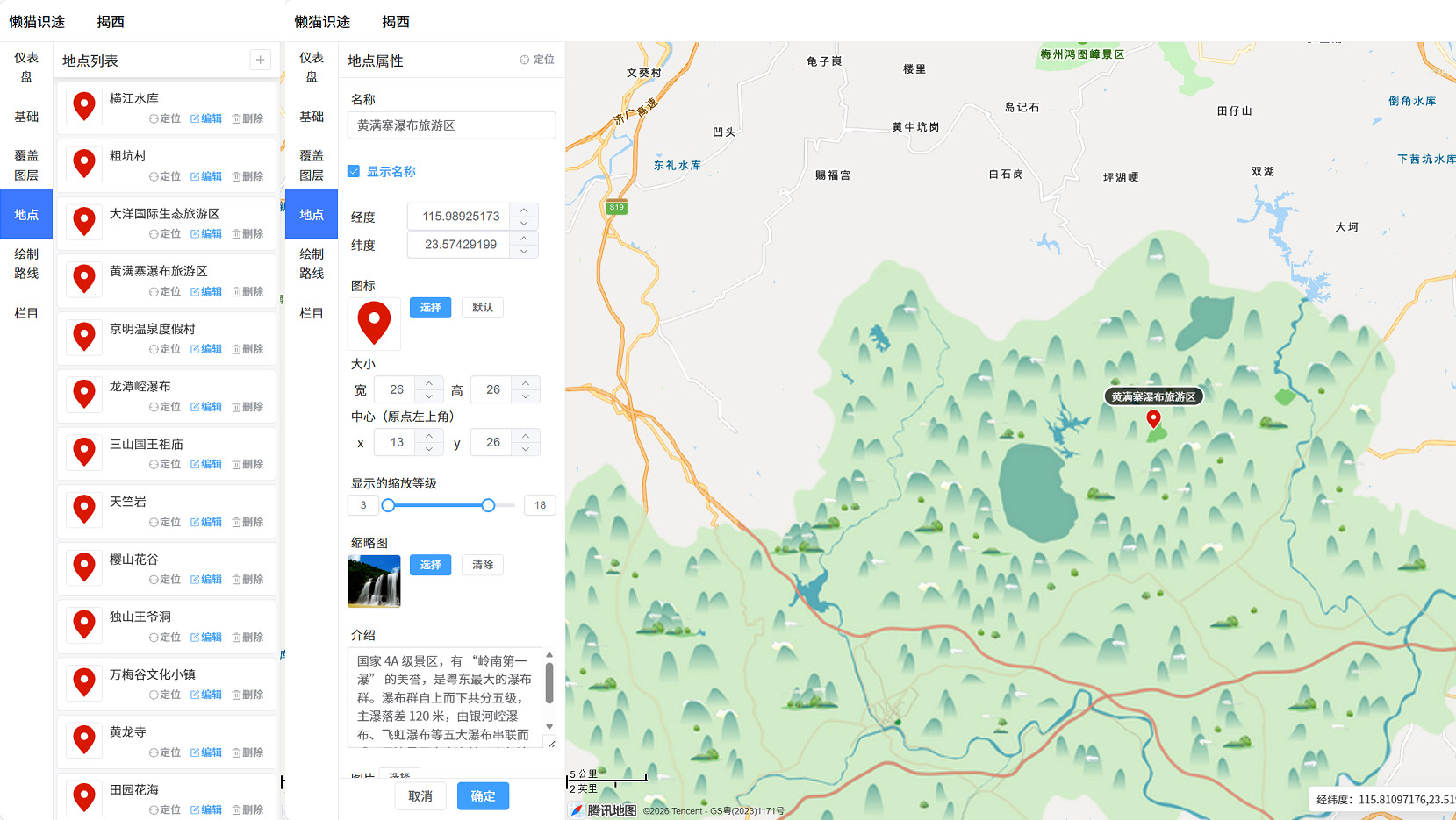 支持工作人员在手绘图上精准定位并标记各景点位置,同时提供多元化信息展示能力,可灵活添加文字介绍、高清图片、宣传视频、360°全景影像及语音讲解等内容,丰富景点呈现形式,让游客全方位了解景点文化内涵与特色亮点;