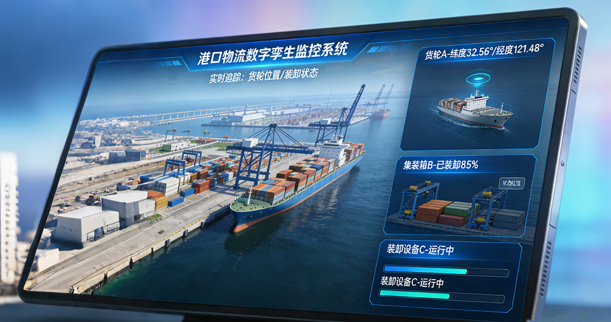 交通物流领域,全链路可视化可追踪货物与运输状态,减少延误与损耗,优化路线与装卸流程,使物流成本降低15%-20%,港口等场景中装卸效率提升25%以上,同时减少货物损耗带来的损失、加速资金周转,提升物流企业核心竞争力,助力物流数字孪生可视化落地见效。